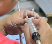 根據客戶的裝配需求,可采用熱熔方式將銅螺柱嵌入螺桿緊固位置,或將保護螺桿套筒嵌入攻絲方式,滿足客戶長期使用或反復拆卸裝配的要求。